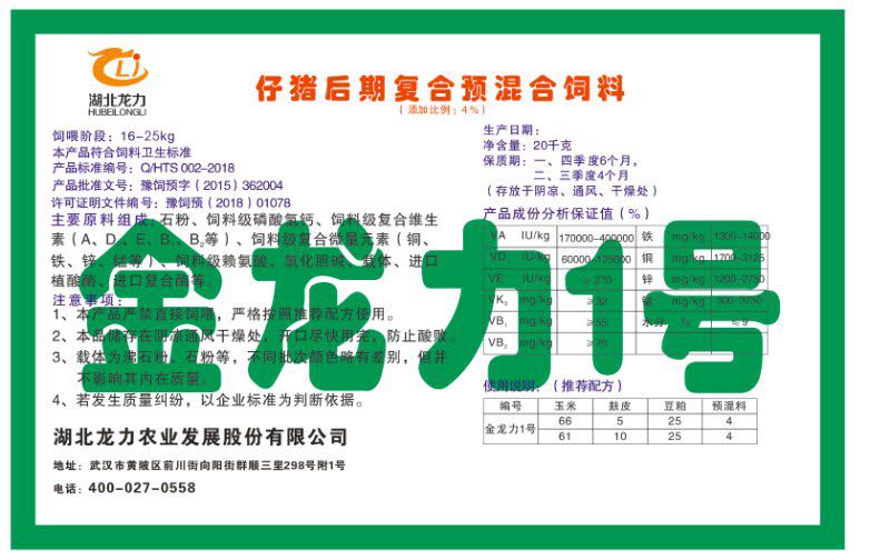 湖北龍力農業(yè)發(fā)展股份有限公司坐落于武漢市黃陂區前川街向陽街群順三里298號附1號。公司成立于2014年6月,公司自成立以來把“創(chuàng)全球最大養(yǎng)豬綜合服務”為企業(yè)愿景。致力于打造教保料品牌”作為公司發(fā)展的明確目標。公司一直致力于豬營養(yǎng)的研究和開發(fā),積極與國內外高校和科研機構合作,推廣養(yǎng)豬技術、動物營養(yǎng)新概念,向世界農牧企業(yè)學習與合作。公司采用國內先進的生產工藝,選擇高精度電子配料秤,高均勻度、無殘留混合機等先進設備....